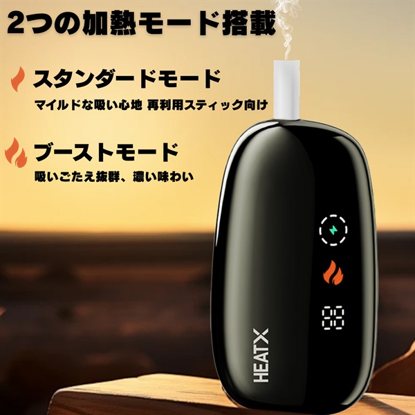 3.味わいも自由に切り替え可能 - ブーストモード(強火力):新品スティック向け。濃厚で満足感ある味わい。 - スタンダードモード(弱火力):再利用スティック向け。マイルドな吸い心地。
