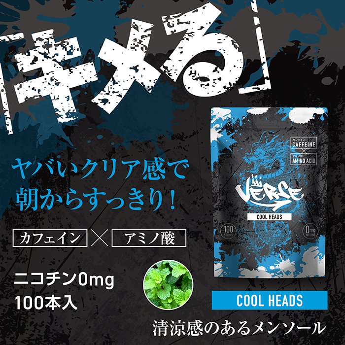 ■COOL HEADS(クールヘッズ) ・清涼感のあるすっきりメンソール。 ・カフェイン × アミノ酸 ヤバい“クリア感”で朝からすっきり!。
